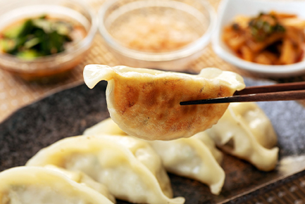 大ぶりでモッチリとした餃子は、食べ応え十分。口いっぱいに広がる新鮮な野菜と豚肉のジューシーさは、食欲がそそられる規格外の美味しさです。段違いの豊かな風味と食感をご堪能ください。